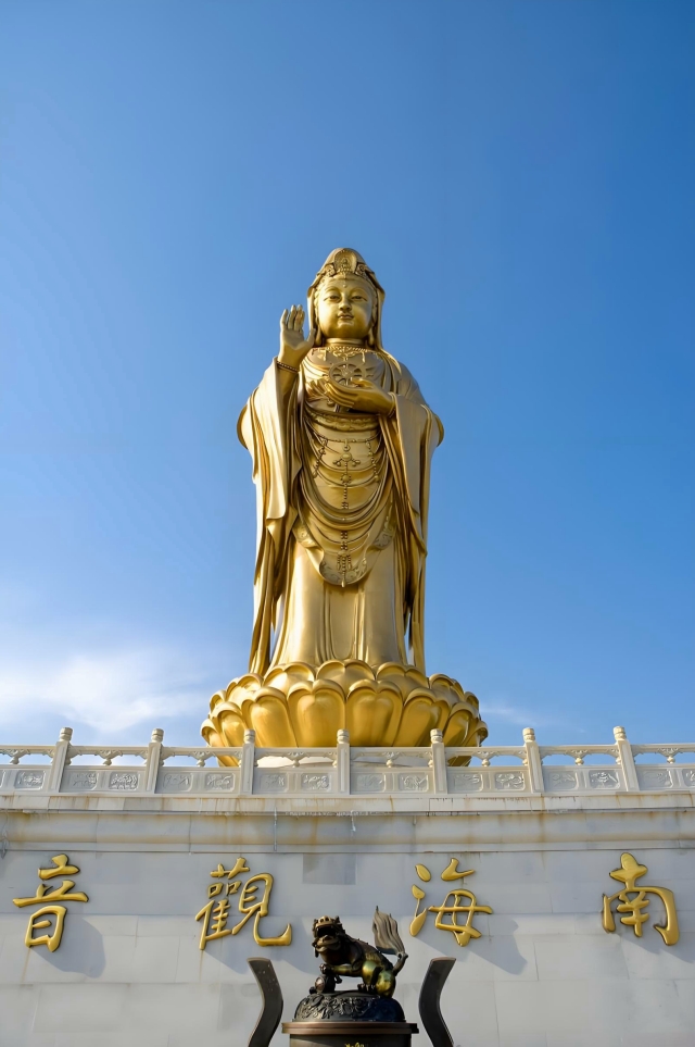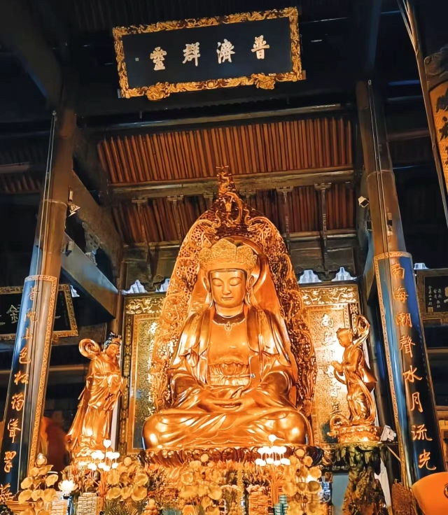 浙江普陀山,是中國佛教四大名山之一、著名的觀世音菩薩(又稱觀音大士、慈航真人、觀音佛祖、觀音媽)道場祖庭,素有「海天佛國」、「南海聖境」之稱。全山最古老的寺院是普濟寺,最大的地標是總高33公尺的南海觀音大佛(普陀山位於東海,惟今之東海為元朝時期之南海,故名南海觀音)。普陀山四面環海,被譽為「第一人間清靜地」。